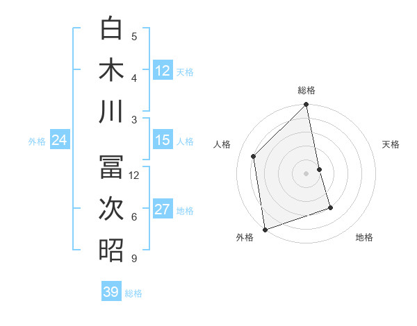 白木川 冨次昭さんを姓名の画数から五運を鑑定