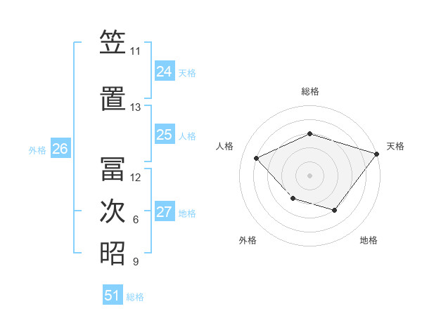 笠置 冨次昭さんを姓名の画数から五運を鑑定