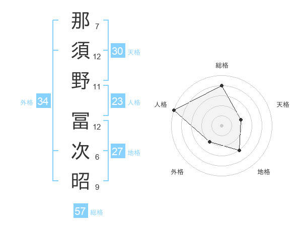 那須野 冨次昭さんの総格は57画の4点!