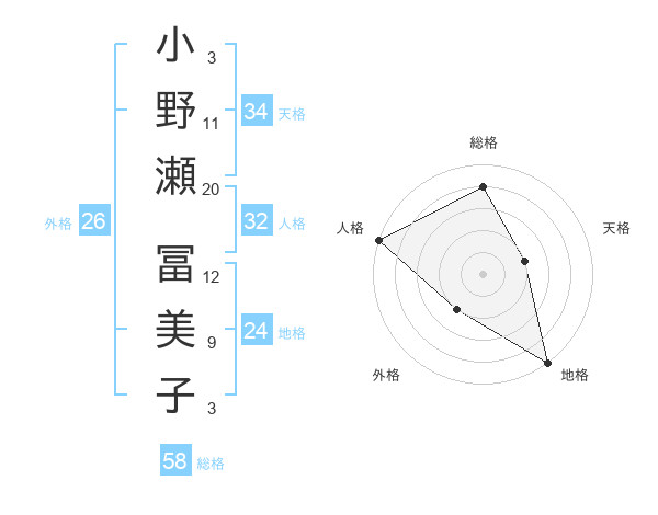 小野瀬 冨美子さんを姓名の画数から五運を鑑定
