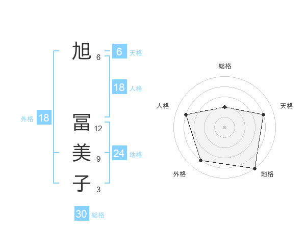 旭 冨美子さんの地格は24画の5点!