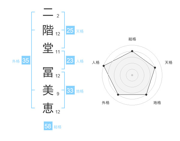 二階堂 冨美恵さんを姓名の画数から五運を鑑定