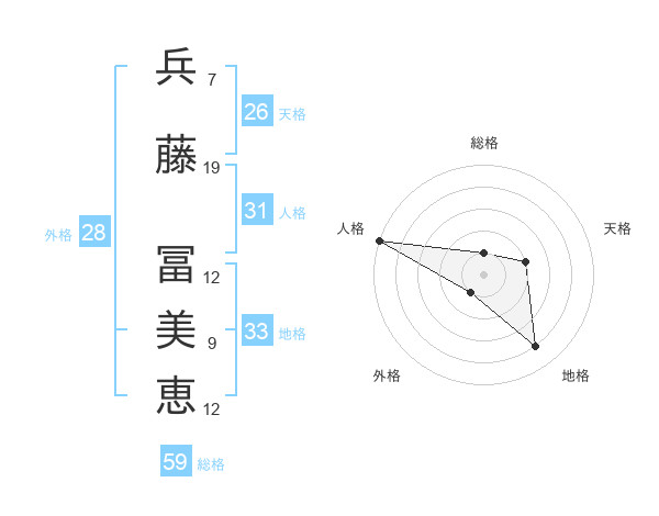 兵藤 冨美恵さんを姓名の画数から五運を鑑定