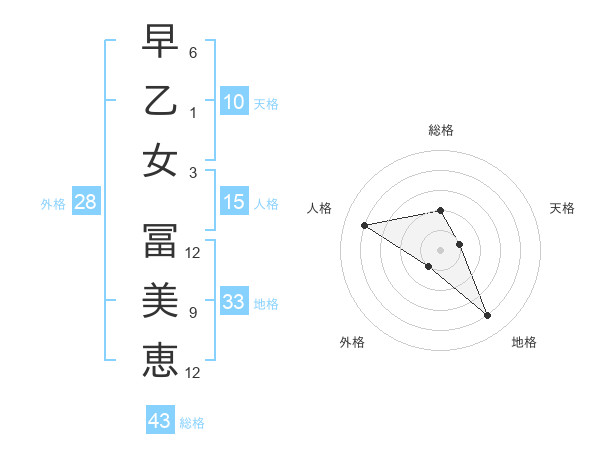 早乙女 冨美恵さんを姓名の画数から五運を鑑定