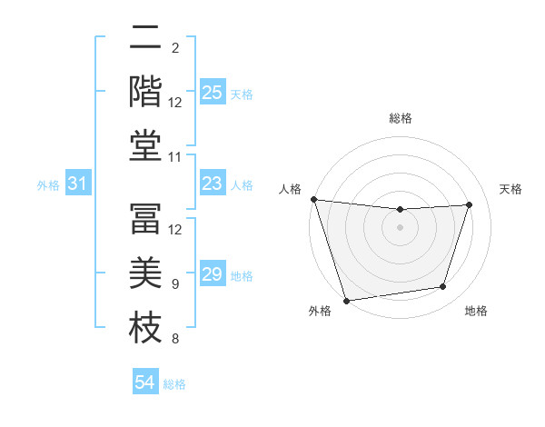 二階堂 冨美枝さんを姓名の画数から五運を鑑定
