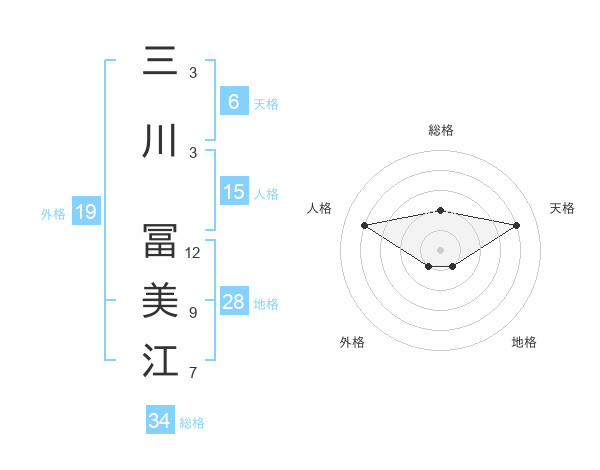 三川 冨美江さんの総格は34画の2点