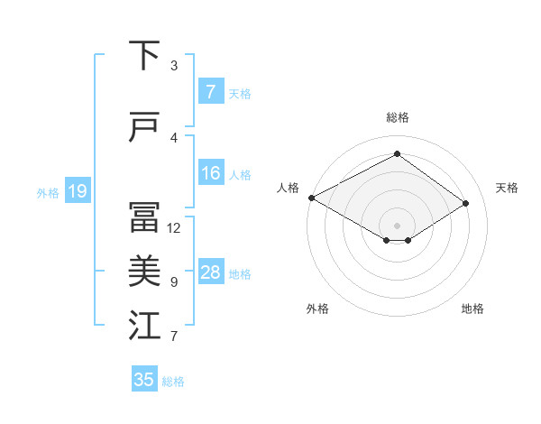 下戸 冨美江さんの総格は35画の4点!