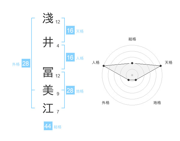 淺井 冨美江さんを姓名の画数から五運を鑑定