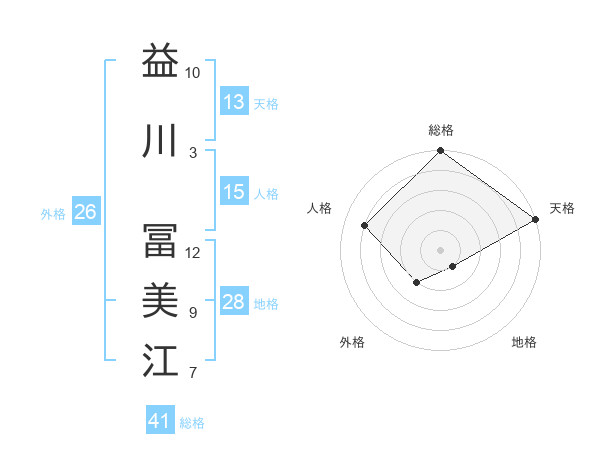 益川 冨美江さんの総格は41画の5点!