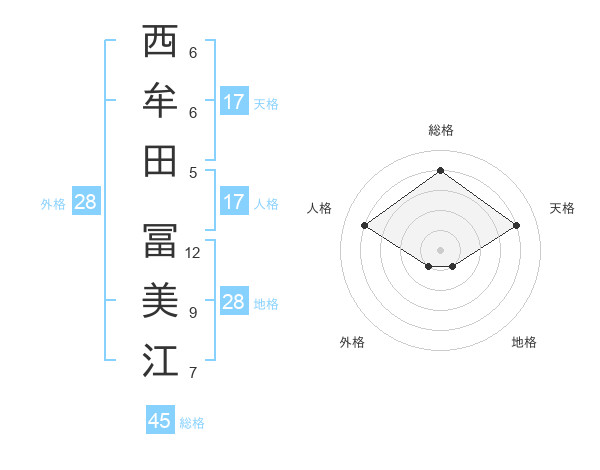 西牟田 冨美江さんの天格は17画の4点!