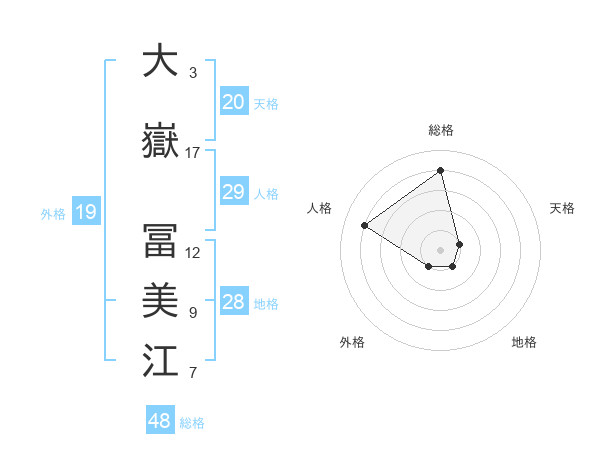 大嶽 冨美江さんを姓名の画数から五運を鑑定