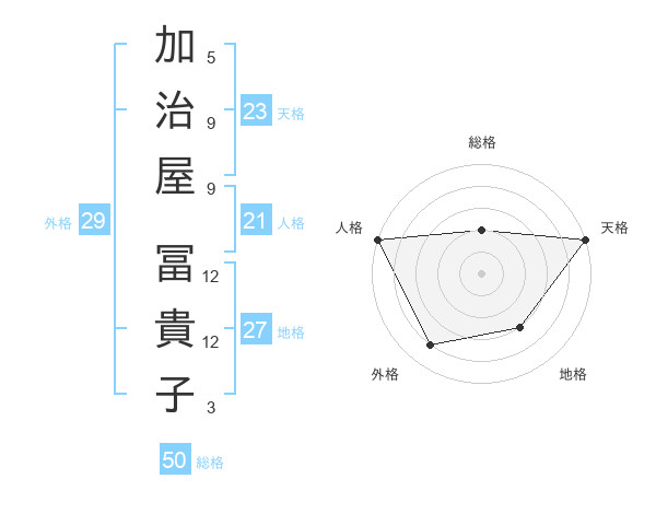 加治屋 冨貴子さんを姓名の画数から五運を鑑定