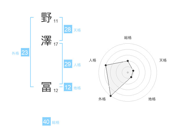 野澤 冨さんの人格は29画の4点!