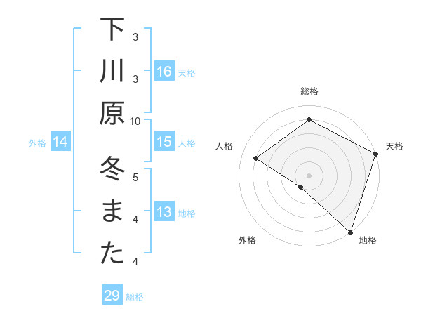 下川原 冬またさんを姓名の画数から五運を鑑定