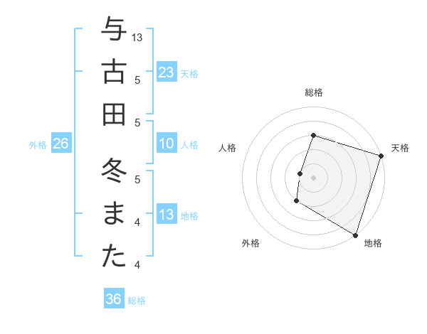与古田 冬またさんの天格は23画の5点!