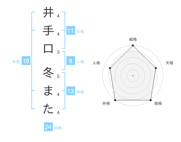 井手口 冬またさんを姓名の画数から五運を鑑定