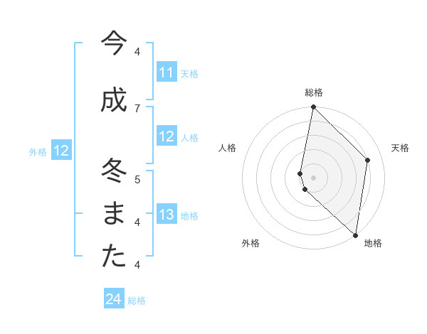 今成 冬またさんの天格は11画の4点!