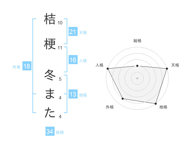 桔梗 冬またさんを姓名の画数から五運を鑑定