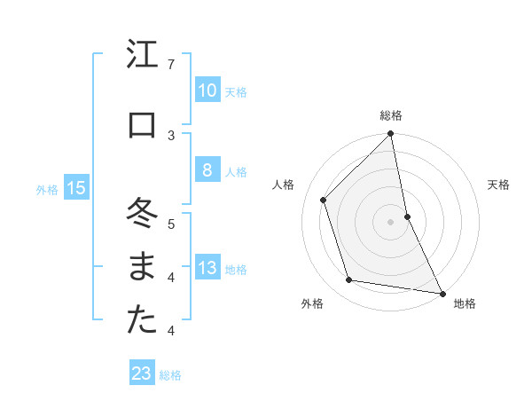 江口 冬またさんの総格は23画の5点!
