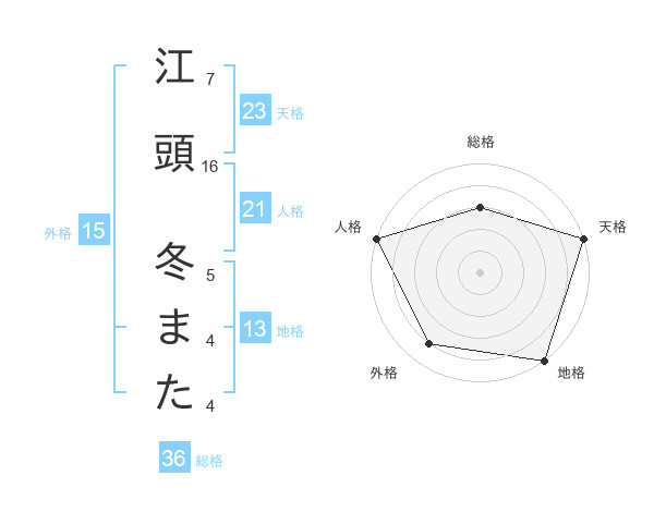 江頭 冬またさんを姓名の画数から五運を鑑定