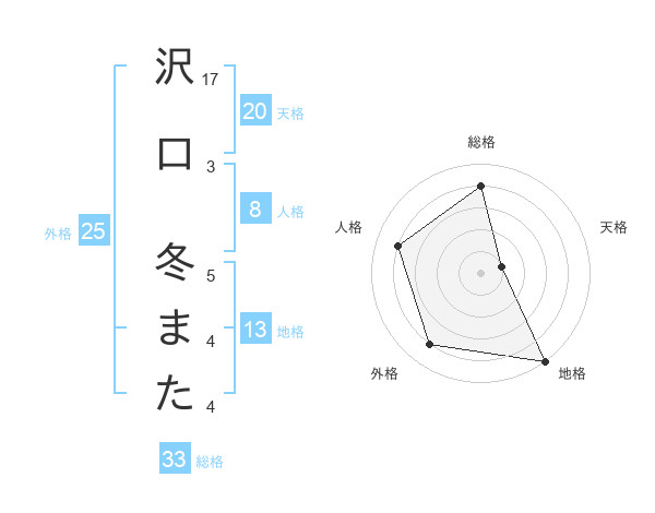 沢口 冬またさんを姓名の画数から五運を鑑定