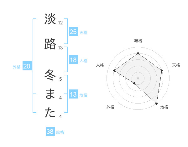 淡路 冬またさんの総格は38画の4点!