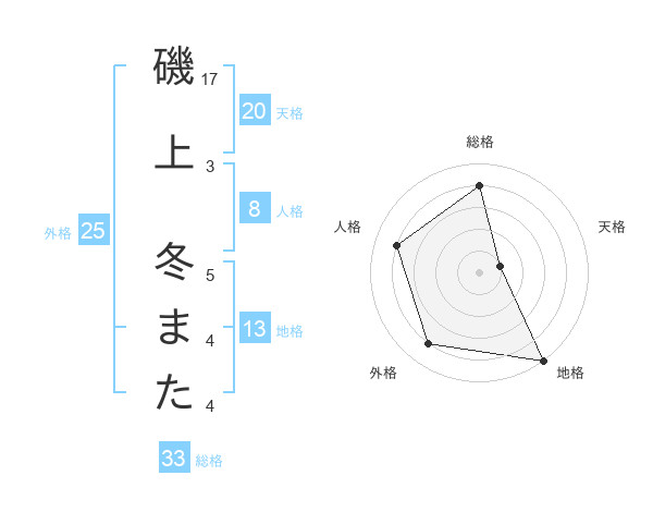 磯上 冬またさんの外格は25画の4点!