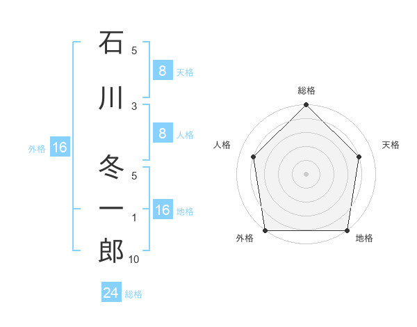 石川 冬一郎さんの総格は24画の5点