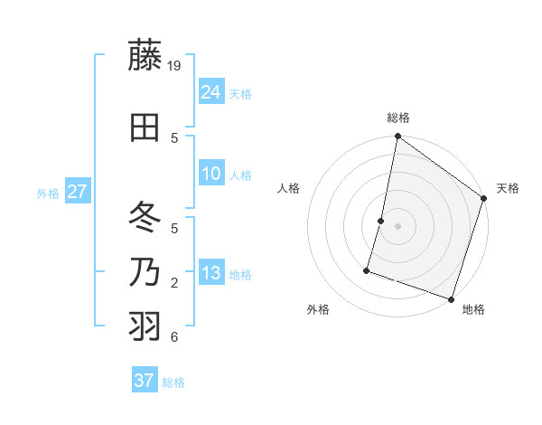 藤田 冬乃羽さんを姓名の画数から五運を鑑定