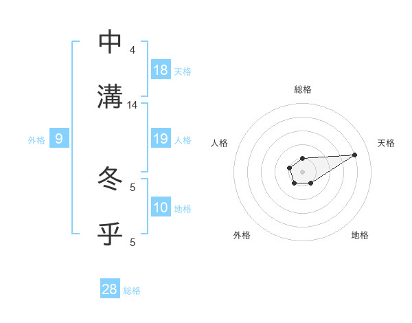 中溝 冬乎さんを姓名の画数から五運を鑑定