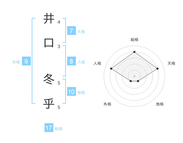 井口 冬乎さんの総格は17画の4点!