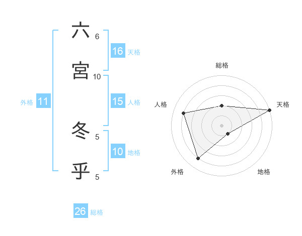 六宮 冬乎さんを姓名の画数から五運を鑑定