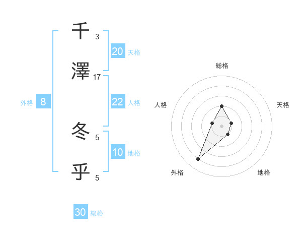 千澤 冬乎さんを姓名の画数から五運を鑑定
