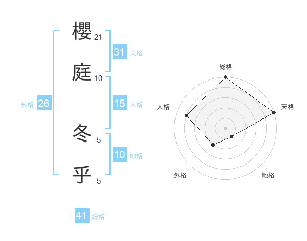 櫻庭 冬乎さんの総格は41画の5点!