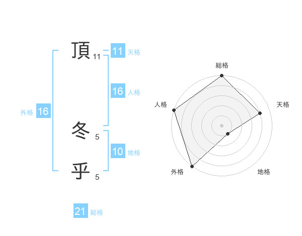 頂 冬乎さんを姓名の画数から五運を鑑定