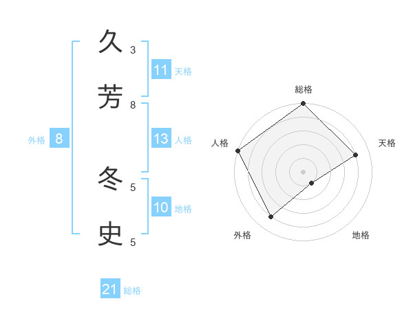 久芳 冬史さんを姓名の画数から五運を鑑定