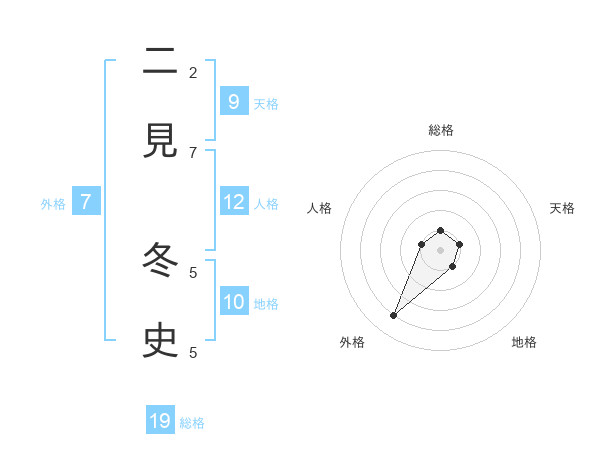 二見 冬史さんの外格は7画の4点!
