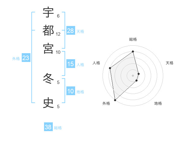 宇都宮 冬史さんを姓名の画数から五運を鑑定