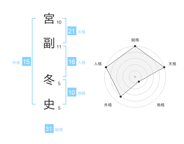 宮副 冬史さんの天格は21画の5点!