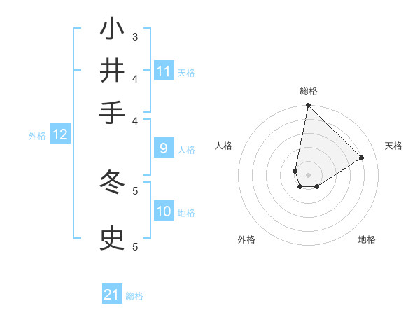 小井手 冬史さんの総格は21画の5点!