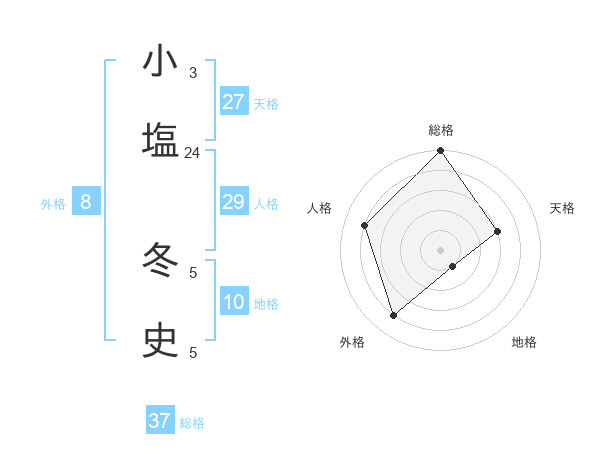 小塩 冬史さんを姓名の画数から五運を鑑定