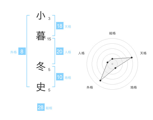 小暮 冬史さんの総格は28画の1点!