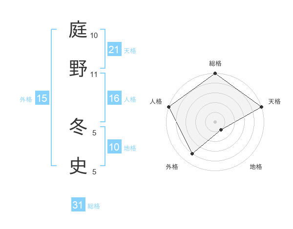 庭野 冬史さんの総格は31画の5点!