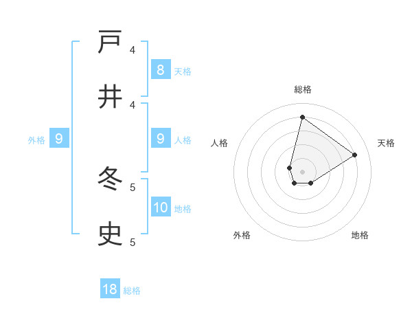 戸井 冬史さんの総格は18画の4点!