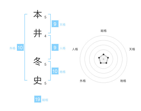 本井 冬史さんの総格は19画の1点!