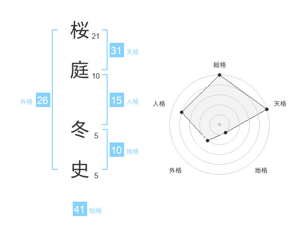 桜庭 冬史さんの総格は41画の5点!