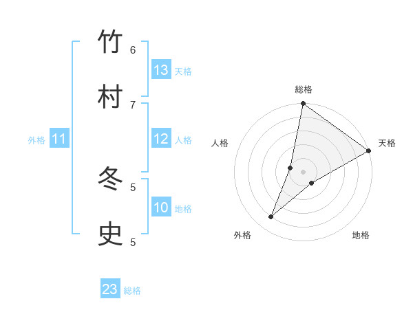 竹村 冬史さんの総格は23画の5点!