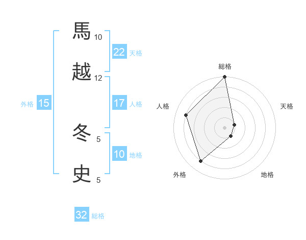 馬越 冬史さんを姓名の画数から五運を鑑定