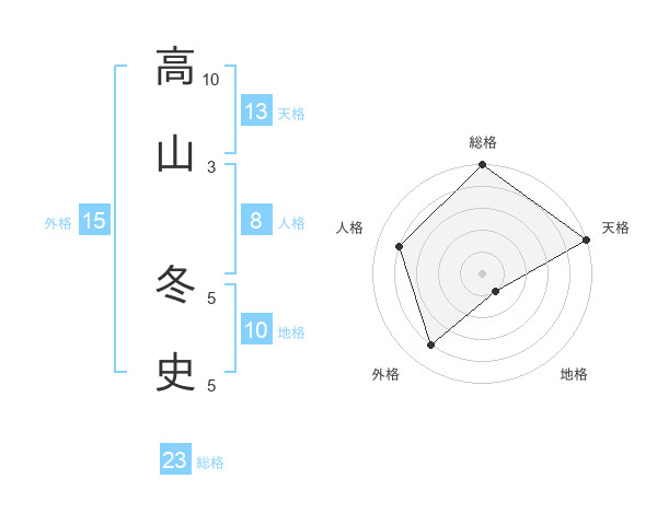高山 冬史さんの総格は23画の5点!