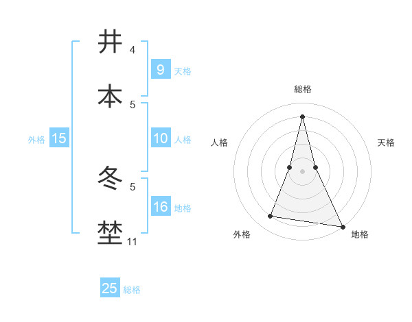 井本 冬埜さんの総格は25画の4点!